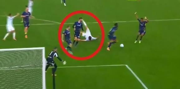 凯芙仑图拉姆的犯规动作之明显,连当值主裁判都已经将哨子含在了嘴里, 然而,就在电光火石之间,裁判收回了哨声,VAR也没有介入,进球居然有效。