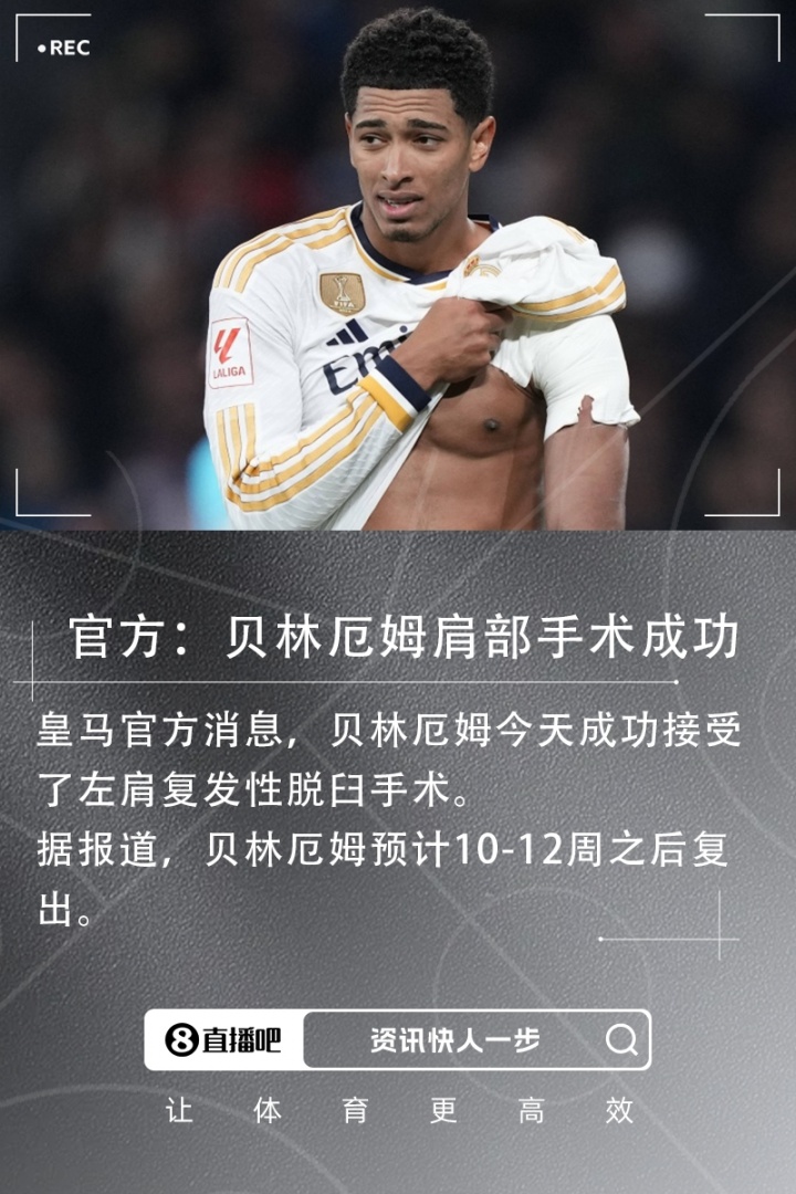 皇马官方消息,球队中场贝林厄姆今天成功接受左肩复发性脱臼手术。